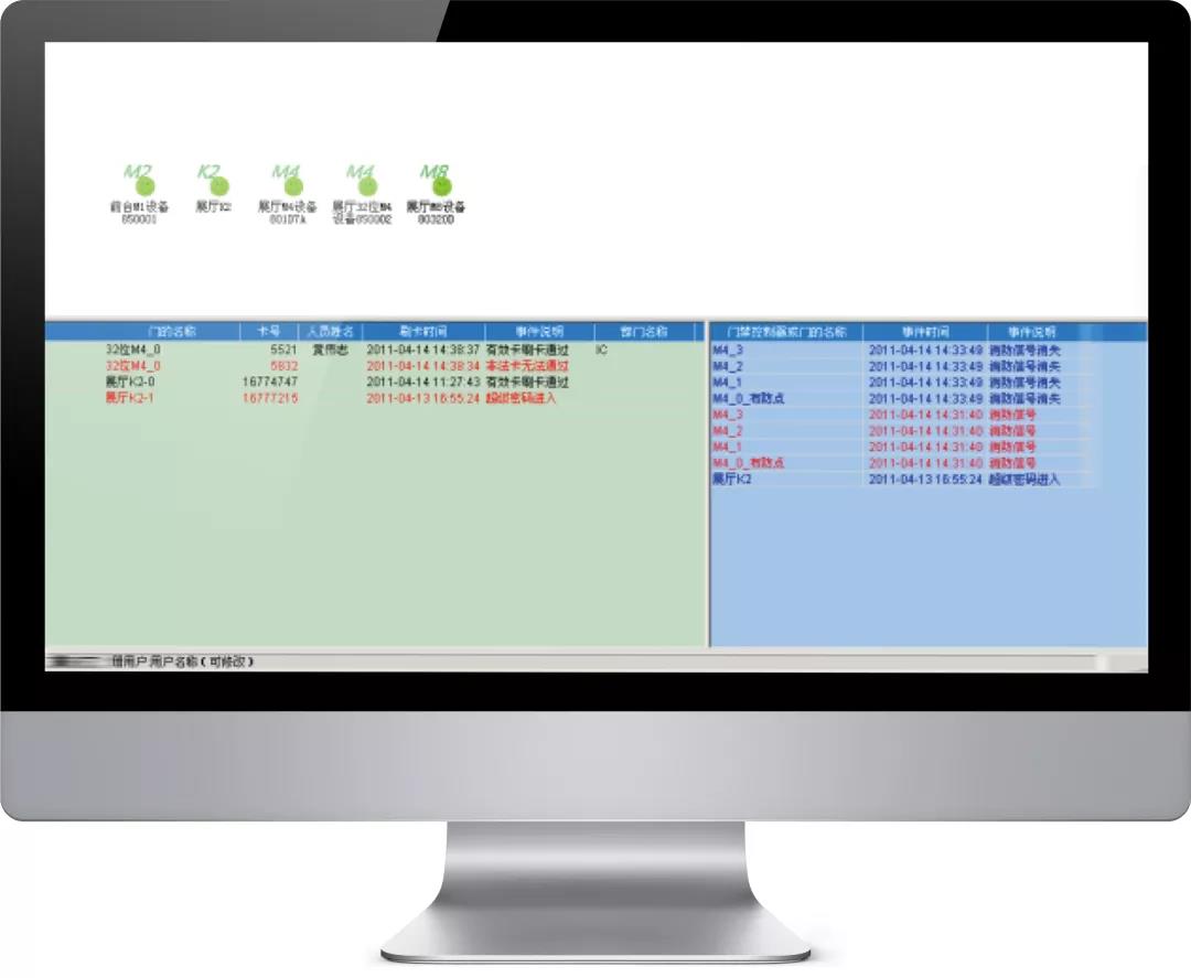 所有的報警(非法卡刷卡、非法闖入、門長時間未關(guān)閉、脅迫報警等)都會在總控制電腦上實時顯示紅色閃動記錄,并驅(qū)動計算機音箱提醒管理者注意,還可以聯(lián)動視頻監(jiān)控系統(tǒng)拍照或錄像。
